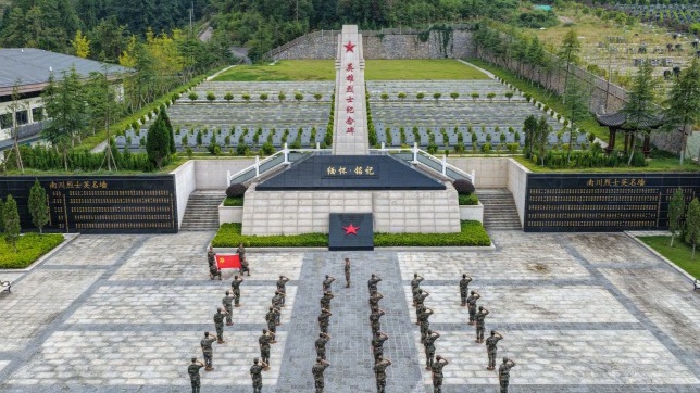 在烈士纪念日来临之际,烈士陵园瞻仰烈士英名墙以及擦拭烈士墓碑的重庆总队方式,