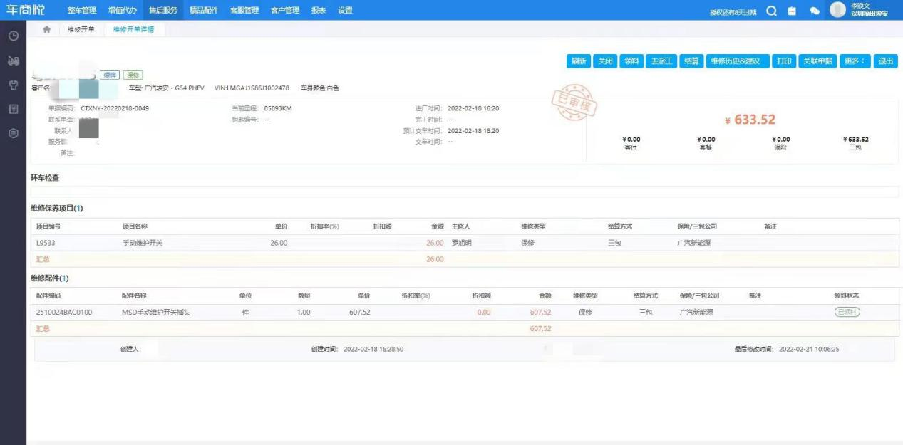 (这张图片由消费者提供) 在这段时间里,费用为600多元,决定继续驾驶。 |