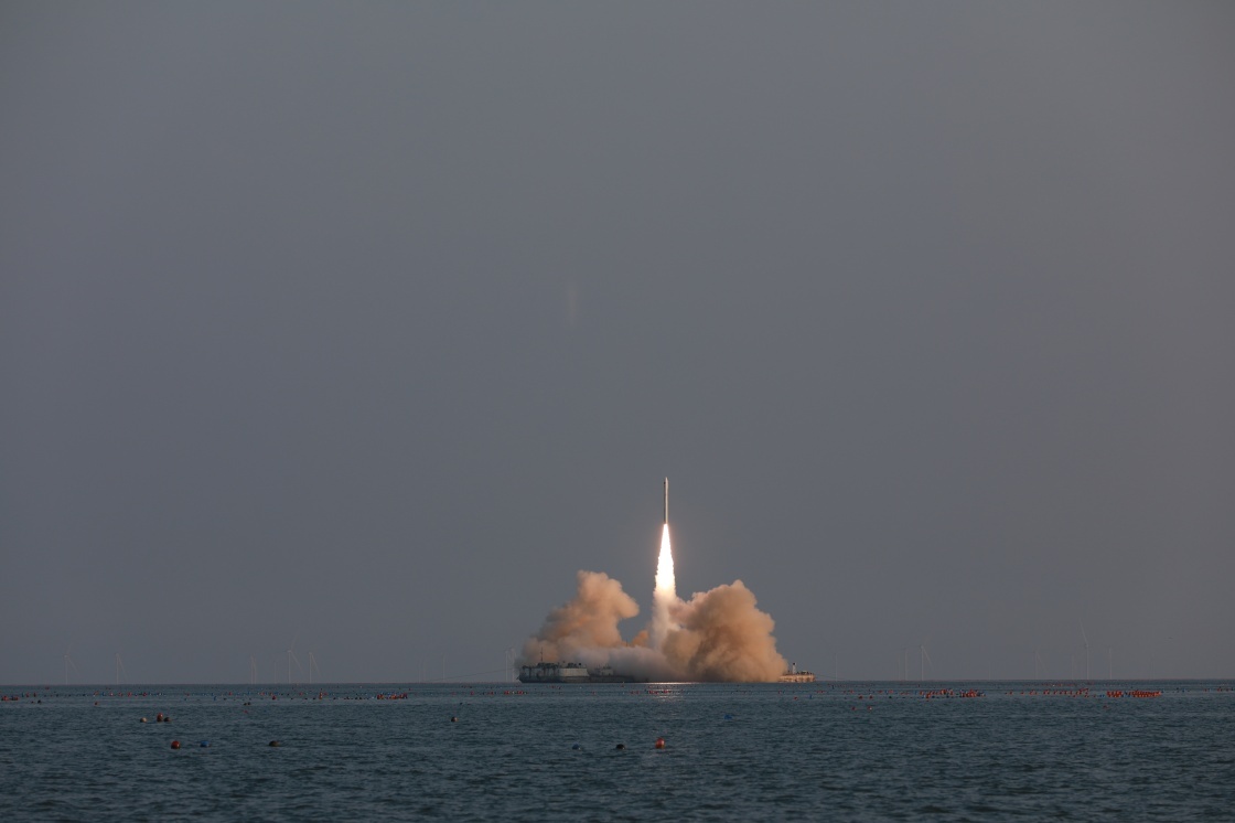 我国太原卫星发射中心使用谷神星一号海射型运载火箭成功将天启星座21星-24星共计四颗卫星送入预定轨道。一箭四星(安迪 摄)